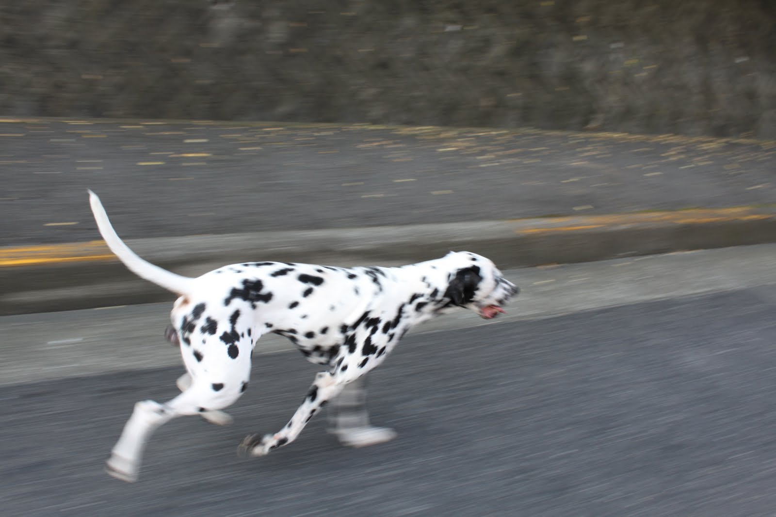 中学の前の坂道を自転車とおなじスピードで走るダニエル。